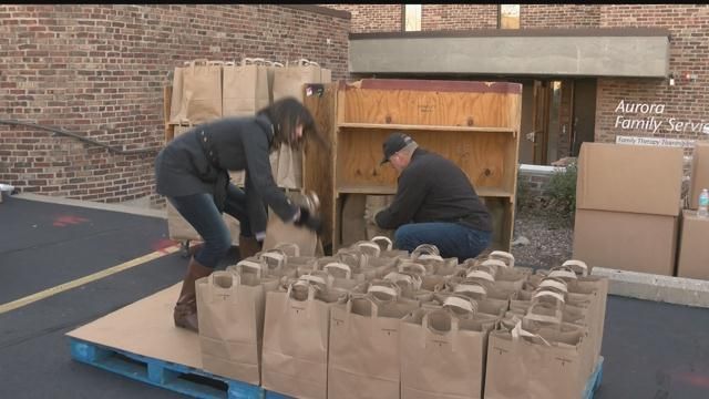 Aurora Family Services collect donations to provide a full Thanksgiving dinner for Milwaukee families.