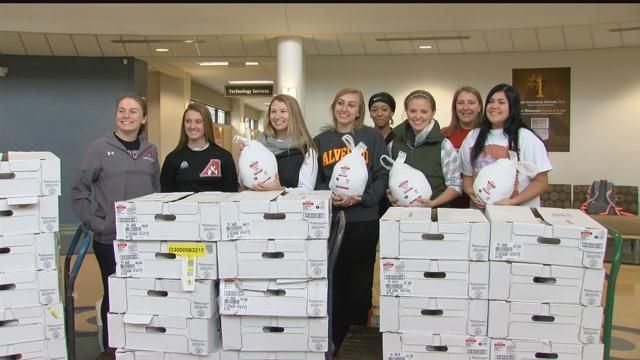 Before the Thanksgiving Break, Alverno College students loaded 280 turkeys into a Hunger Task Force truck.