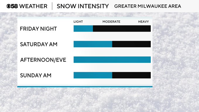 Snow showers will begin to creep in Saturday morning, but likely still light and scattered in nature. Then the snow turns widespread and may come down heavily at times during the afternoon and evening. Additionally, as winds come off the lake we could see some enhancement there too. By Sunday morning the snow becomes scattered and lighter again, finally ending by the afternoon. At this time we are looking for the potential of over six inches of snow in many places, including our largest cities.While winds during the duration of this event will not be as strong as what we battled through the last two days, breezy conditions will aid in reduced visibility, especially during the times where snowfall rates hover at a half to 3/4" per hour. Winds will be brisk on the backside of this system Sunday so blowing snow may still provide some travel troubles. We will continue to monitor conditions closely the next 36 hours with continuous updates here, check back for updates!