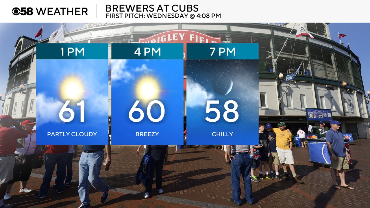 Cool but sunny and dry for the Brewers against Cubs in Chicago