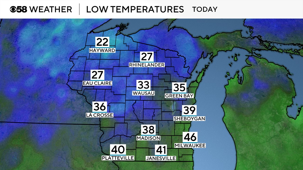 Wednesday morning was the coldest morning in a month. Lows dropped into the 40s for everyone and even some northern counties got all the way down to the upper 30s. The growing season came to an end in northern Wisconsin where they had widespread 20s and were under freeze warnings with frost advisories extending as far south as the Dells and east as Green Bay.