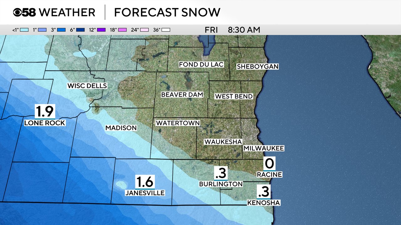 IF those south and southwest areas manage to get snow it looks very likely with under a half inch possible. West of Madison has the better chance to see an inch or more of snow with best chances in SW Wisconsin.
