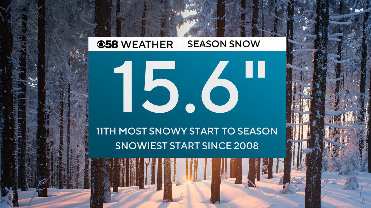 The snowfall in Milwaukee pushed our season snowfall total over 15". The 15.6" we've picked up so far is nearly three times the average and is the 11th most snowy start to the season on record and the snowiest start since 2008. So, if you feel like it's been awhile since it's been this snowy this early in the season you are exactly right!