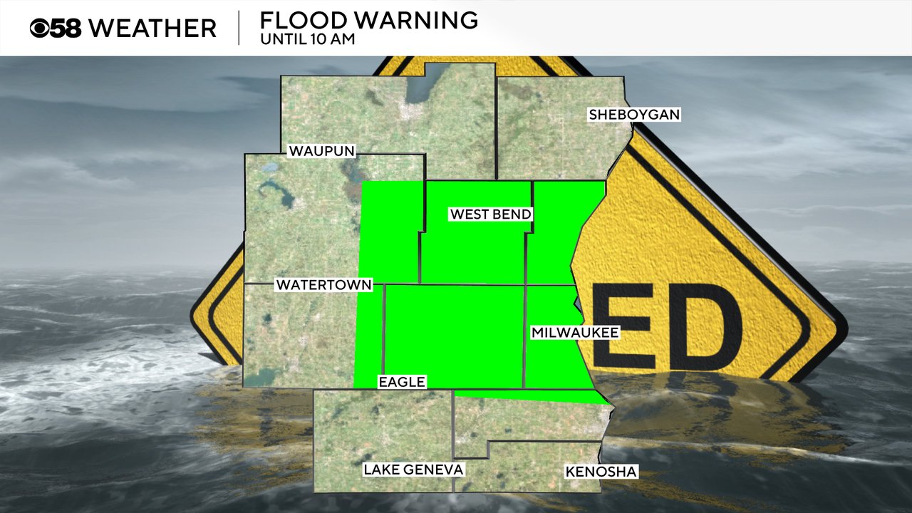 Flood warnings continue for the four county area that was hit the hardest: Waukesha, Milwaukee, Washington and Ozaukee Counties. Those counties, and a few surrounding areas, are under a flood warning until 10 AM Monday for continued standing water.