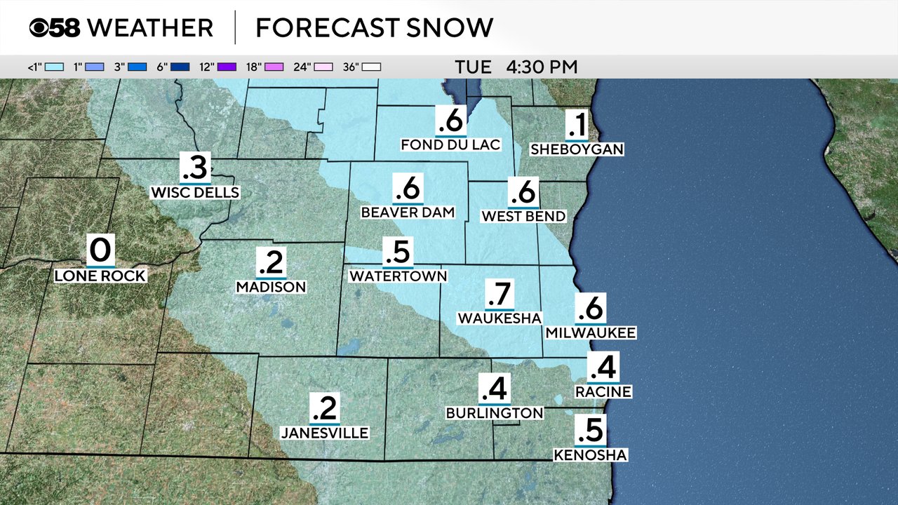 A lot of this snow melts by the end of the week as highs reach the 50s to around 60. Download the CBS 58 Weather app to track the snow and the 10-day forecast.
