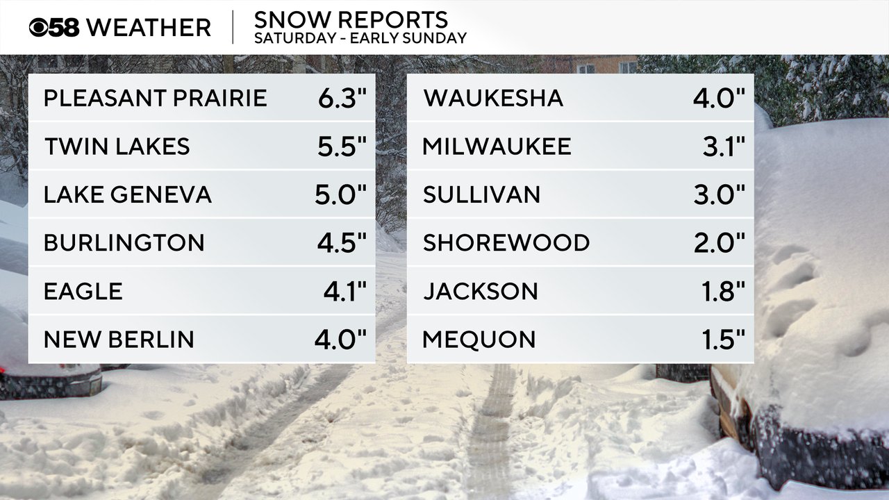 Winter continues to stay active across southeast Wisconsin. We had a winter weather advisory issued this past weekend and we satisfied that with 3-6" of snow in our southern half of counties then northern areas got closer to 0-2". Milwaukee added another 3" to an already impressive start to the snowy season.