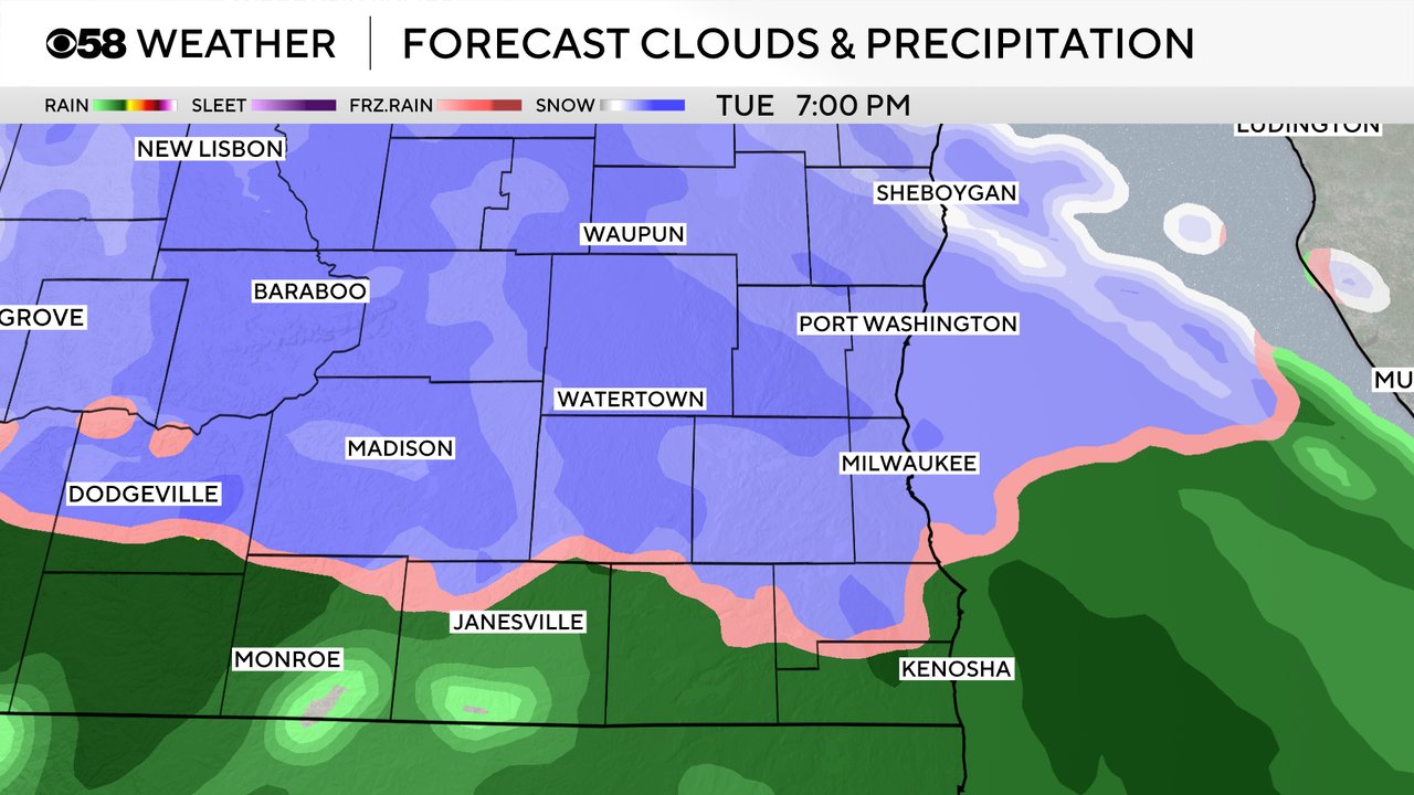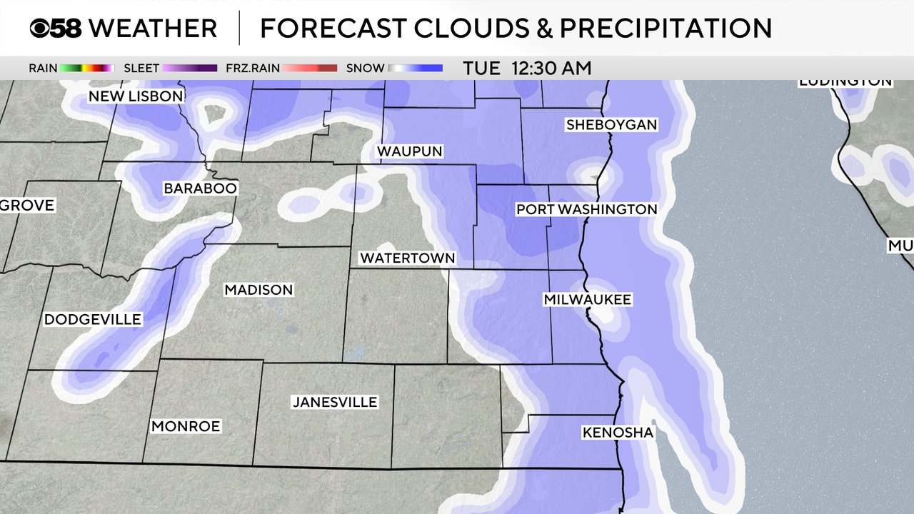 Download the CBS 58 Weather app to track the light snow Monday night and the wintry mix Tuesday into Wednesday morning.