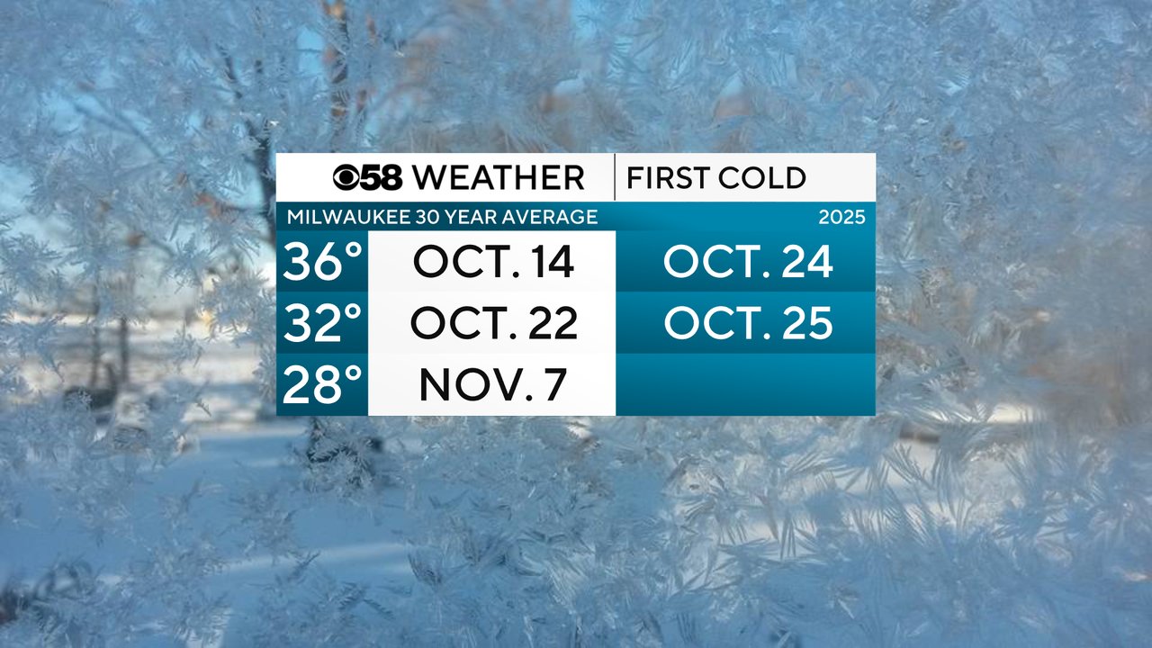 Milwaukee typically sees the first freeze of the season in the last ten days of the month of October. And that came true this year with lows dropping into the low to middle 30s at the end of last week. Milwaukee had its first frost of 36 degrees or colder on Friday morning then saw the first freeze on Saturday when the low dropped to 32. We are still waiting on the first killing freeze of 28 or colder in most areas.