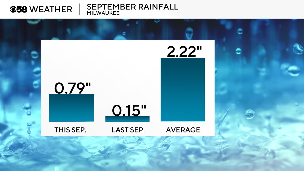 Milwaukee didn't see much of the heavy rain at the airport so our September rainfall total stays below average at 0.79" which is almost an inch and a half below the September average.