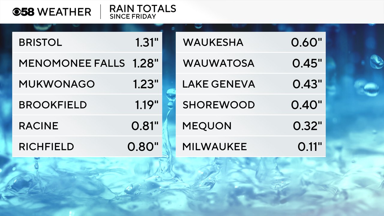 The start to the new season is still feeling like the end of summer with highs in the upper 70s to around 80 for Monday and scattered showers are storms likely. The continued chance for storms comes after a weekend that saw very scattered rain activity. We even had a severe thunderstorm warning for hail in Walworth, Racine and Kenosha Counties on Saturday. Some areas picked up over 1" of rain over the weekend while others got less.