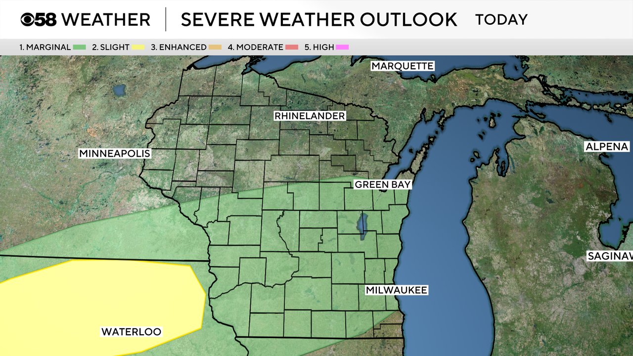 Any storms that do form and move through southeast Wisconsin on Monday have the potential to be on the stronger to severe side. A Level 1 Marginal Risk is in place for most of the southern half of the state. Gusty wind and hail will be the main threats along with some heavy rain and thunder/lightning.