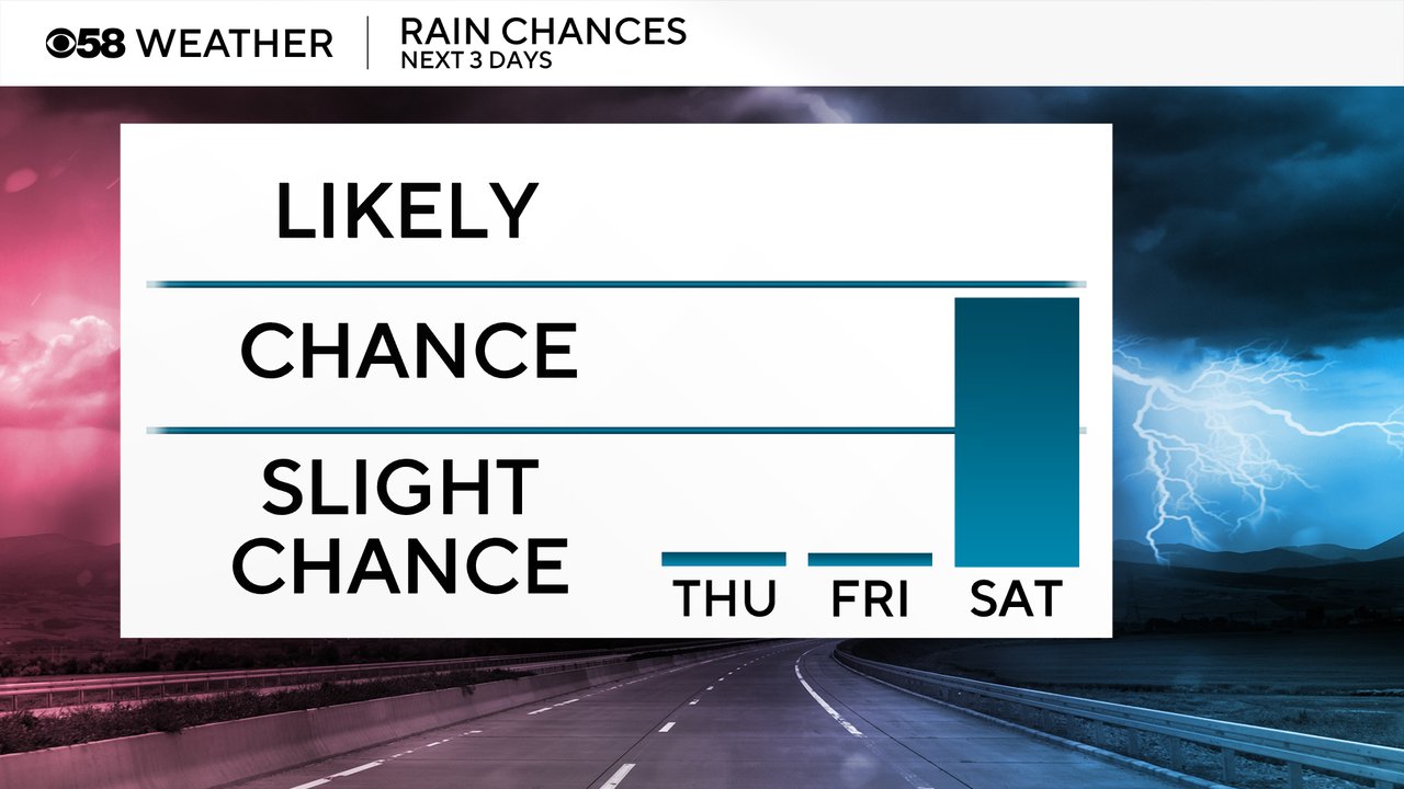 Download the CBS 58 Weather app to see how rain chances change heading into the weekend and track any storms that do develop.