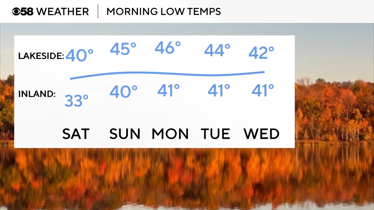 After Saturday morning, low temps will warm up into the low to middle 40s doing away with any big frost or freeze concerns.