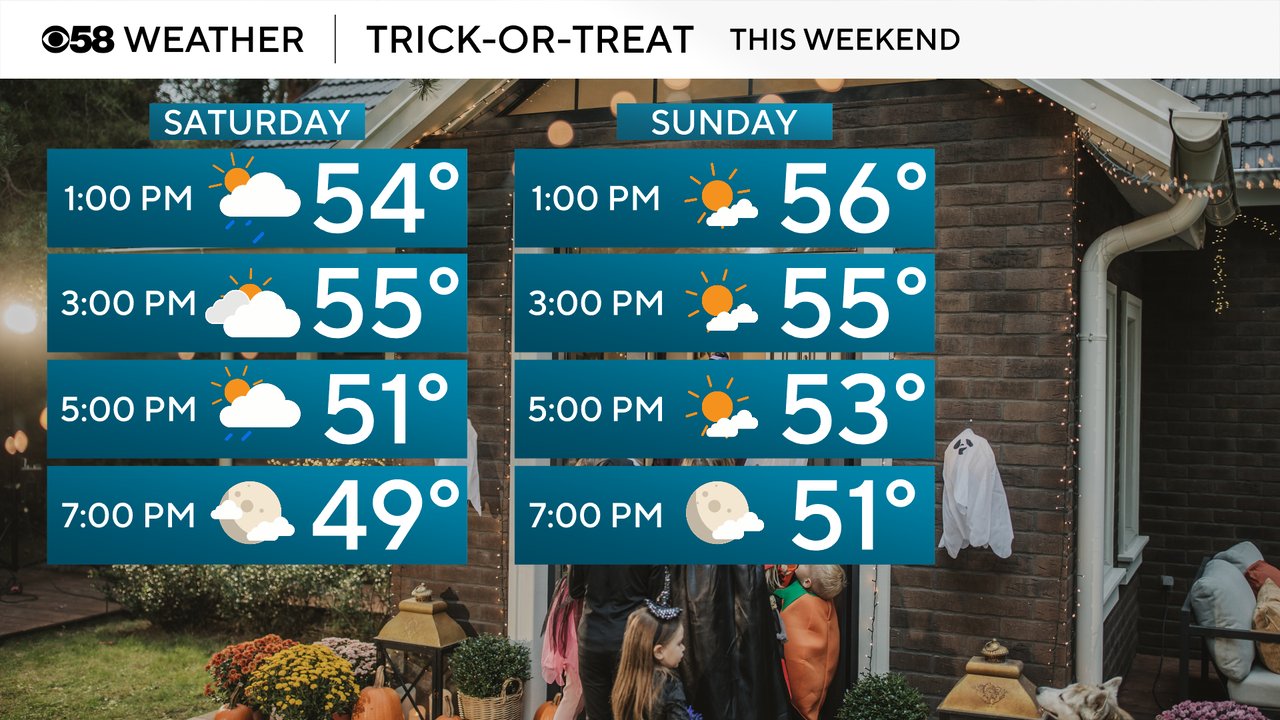 The clouds that increase Friday night into Saturday will also bring a chance for isolated showers with them as we head into Saturday. Over the last 24 hours most weather models have trended a bit wetter Saturday bringing in at least a few isolated showers from mid-morning through the early evening. Grabbing the umbrella for trick-or-treating Saturday would be a good idea. Temperatures for trick-or-treating both Saturday and Sunday start in the mid 50s in the afternoon then fall to around 50 by the evening.