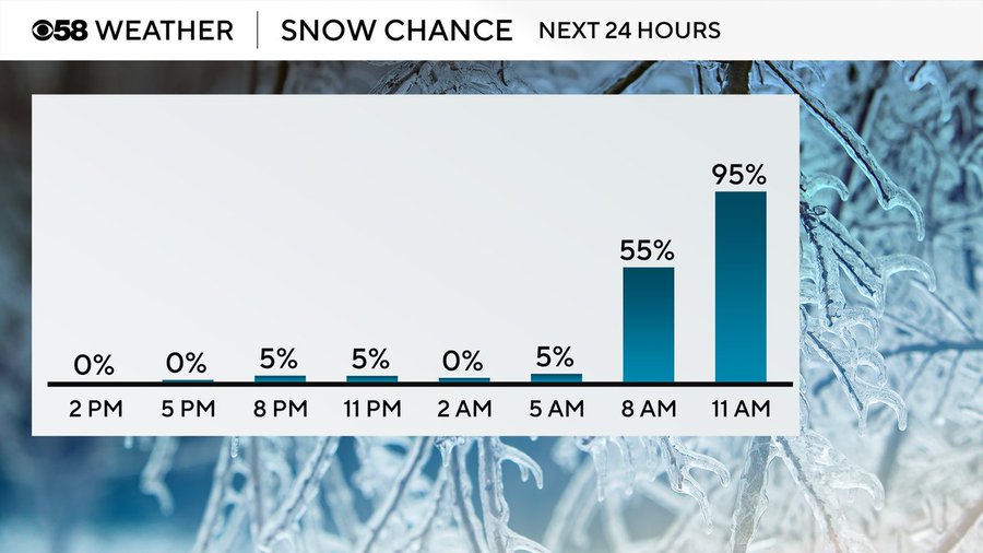 Download the CBS 58 Weather app to track the snow with the interactive radar once it starts!