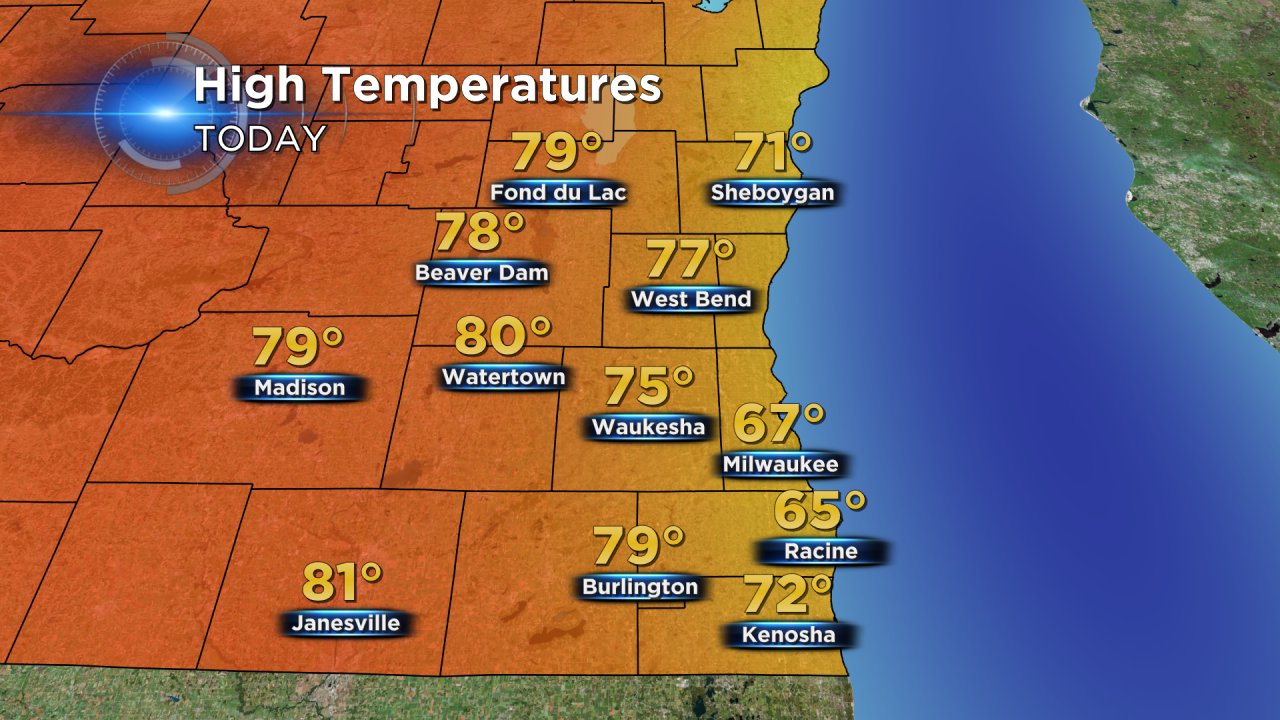 If for whatever reason, you didn't have an opportunity to get outside this weekend, you still have a chance to enjoy the nice weather. In fact, Monday has the potential to be the warmest day of 2016! The lake breeze will take a break Monday morning as a southwest wind moves through, this will allow temperatures to quickly warm through the 50s and 60s during the morning. Without a lake breeze, by noon Milwaukee is expected to be right around 70°. With a little more warming the temp lakeside should reach the low to middle 70s with inland areas staying in the middle to upper 70s and an isolated 80° temp not out of the question. A lake breeze will return by late afternoon or early evening. If that lake breeze arrives earlier than expected then temperatures may struggle to reach 70°.