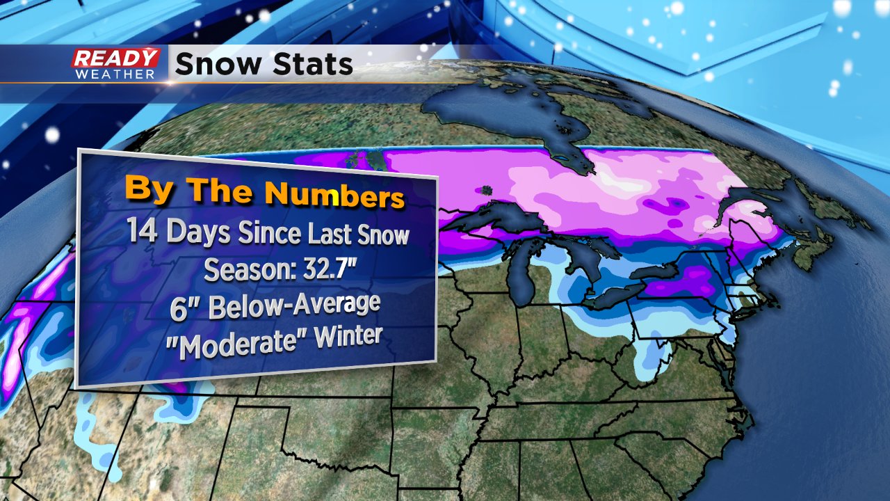 After an overall snowy February, Milwaukee is still down about 6" from average for snowfall this winter. But, the next chance for precipitation is starting to trend more snowy. The storm track has moved a little south and overall temperatures look a touch colder so more snow than rain is expected.