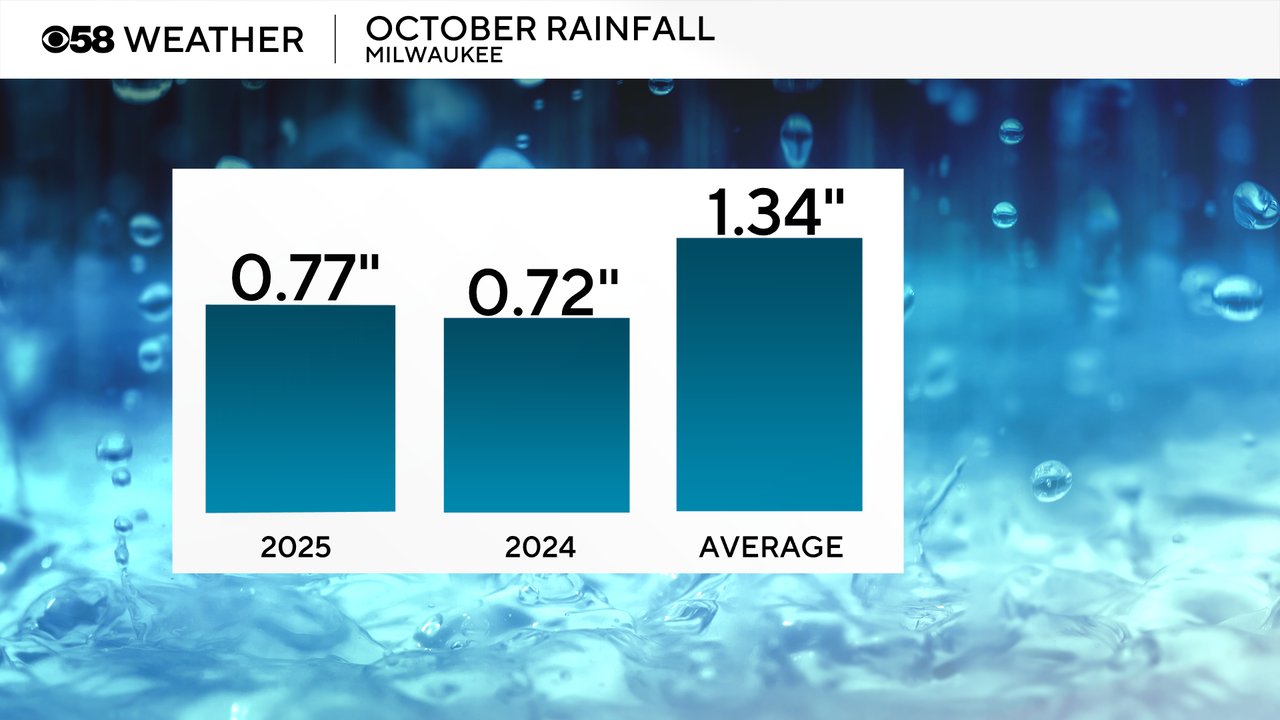 Most of southeast Wisconsin has picked up a quarter inch or so of rain through 7 AM with a little more on the way. So far this October we've picked up about a quarter inch of rain which is nearly identical to the amount of rain we've picked up by this point of the month last year. We are running a bit over a half inch below average on rain for the month.