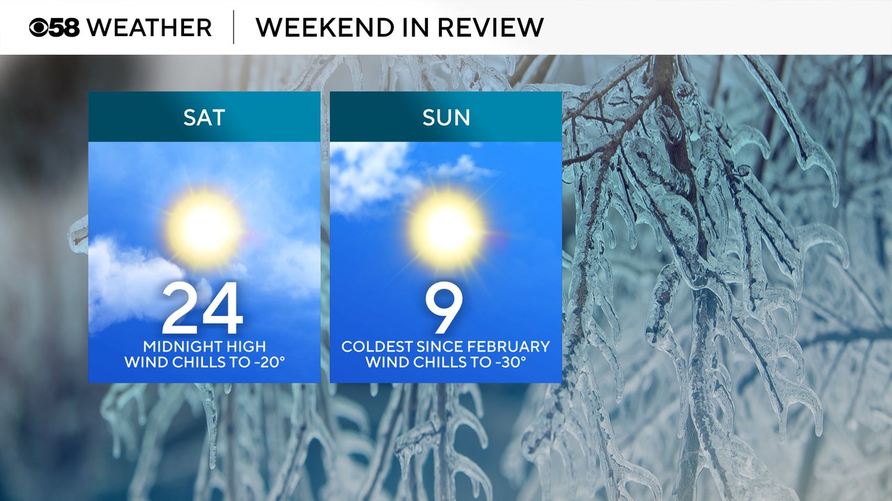 This weekend saw the coldest temps and wind chills since the middle of February last winter. The official high for Saturday goes down at 24 degrees, but that was the temp at midnight, most of the day was in the single digits with wind chills as cold as -20. Lows Sunday morning dropped into the single digits below-zero for everyone. The high Sunday stayed in the single digits at 9.