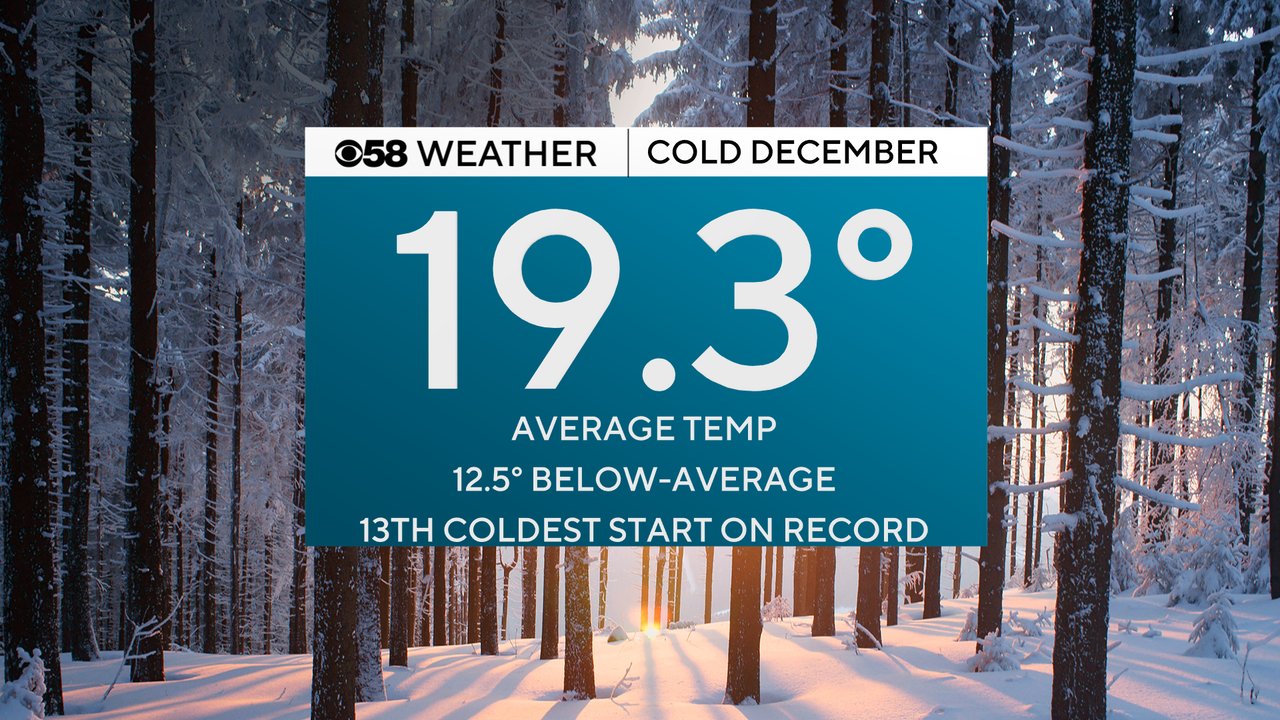 Overall this December has been very cold with an average temperature for the month through the 14th of 19.3 degrees which is over 12 degrees below average and the 13th coldest start to December on record. It's also the coldest start to the month in 20 years since 2005.